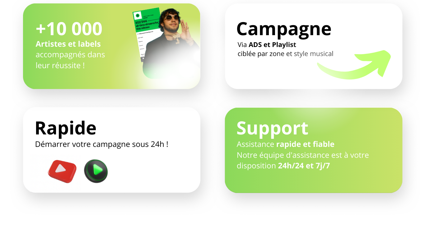 Absolument. Nos méthodes sont conformes aux conditions d'utilisation des plateformes. Nous avons aidé des milliers d'artistes. La sécurité de votre compte est notre priorité absolue.